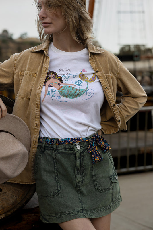 Handmade, hand-drawn mermaid tees, crafted by artist Nadia Watts