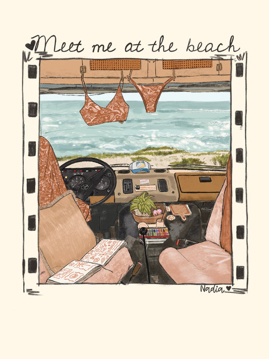 Meet Me at the Beach Vintage Inspired Illustrated Women's Tee