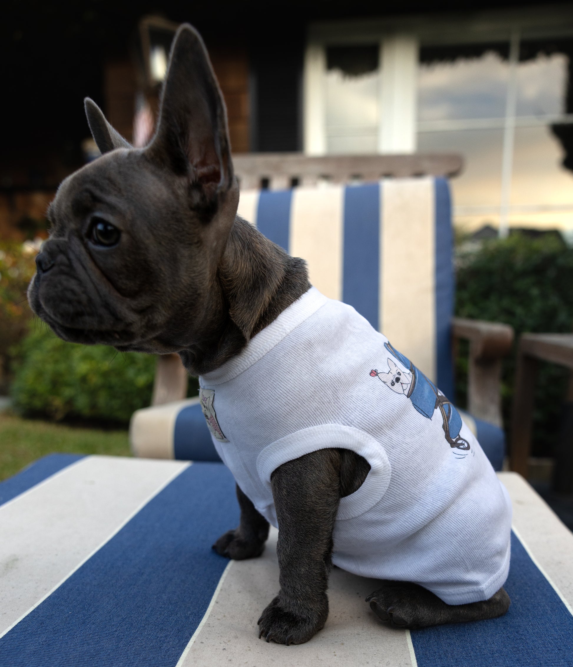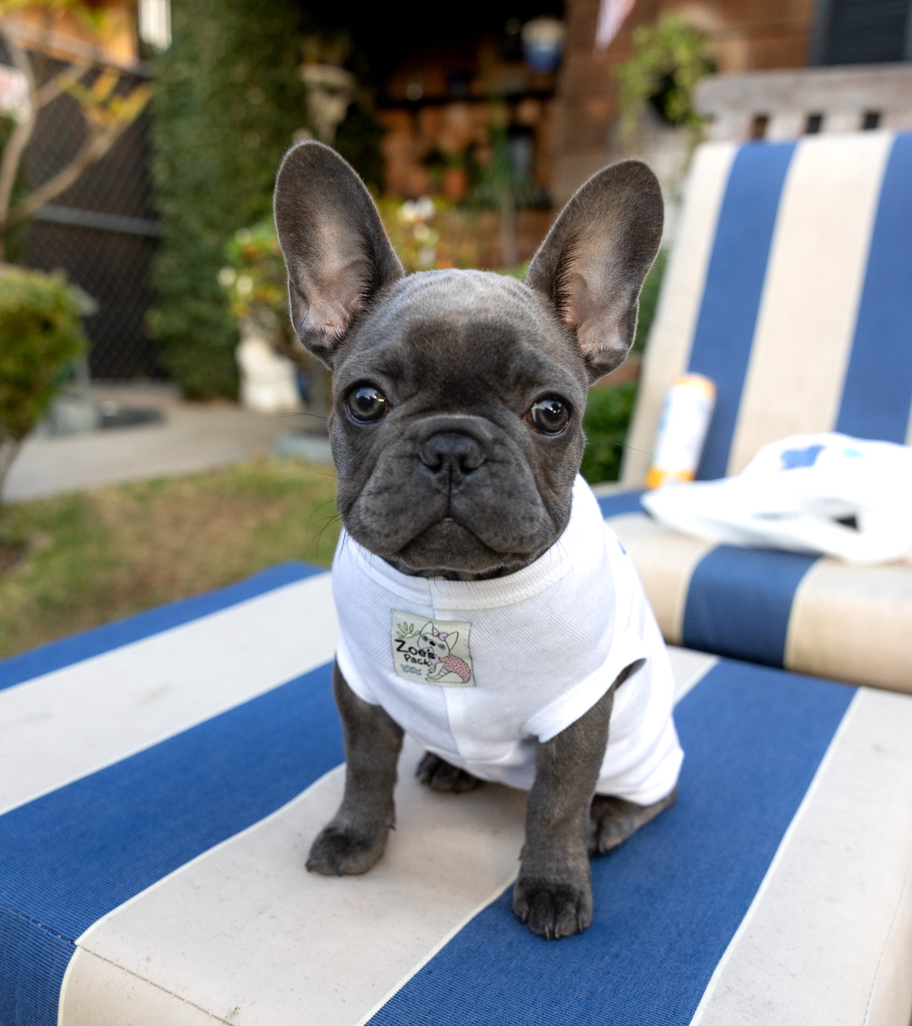 The Enjoy Your Ride dog tee is part of the Zoe’s Pack collection, an artist-designed line for North Shore Girls inspired by Zoe the Frenchie. This piece features an original hand-drawn illustration of a pet enjoying a ride in a blue dog stroller, complete with paw print accents.