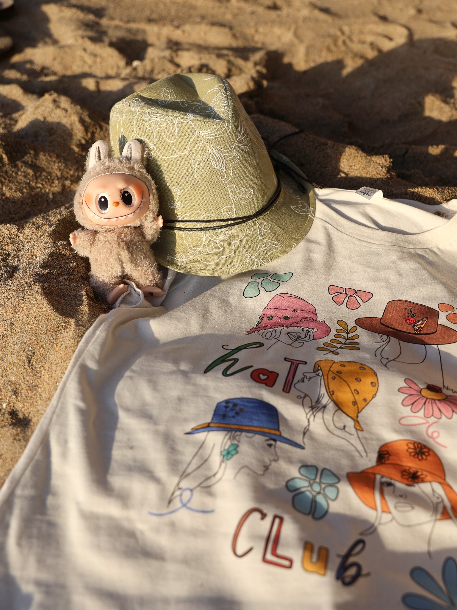 Join the Hat Club! This fun and stylish graphic tee features a hand-illustrated design of women wearing different hats, perfect for anyone who loves summer, sun, and a touch of elegance.