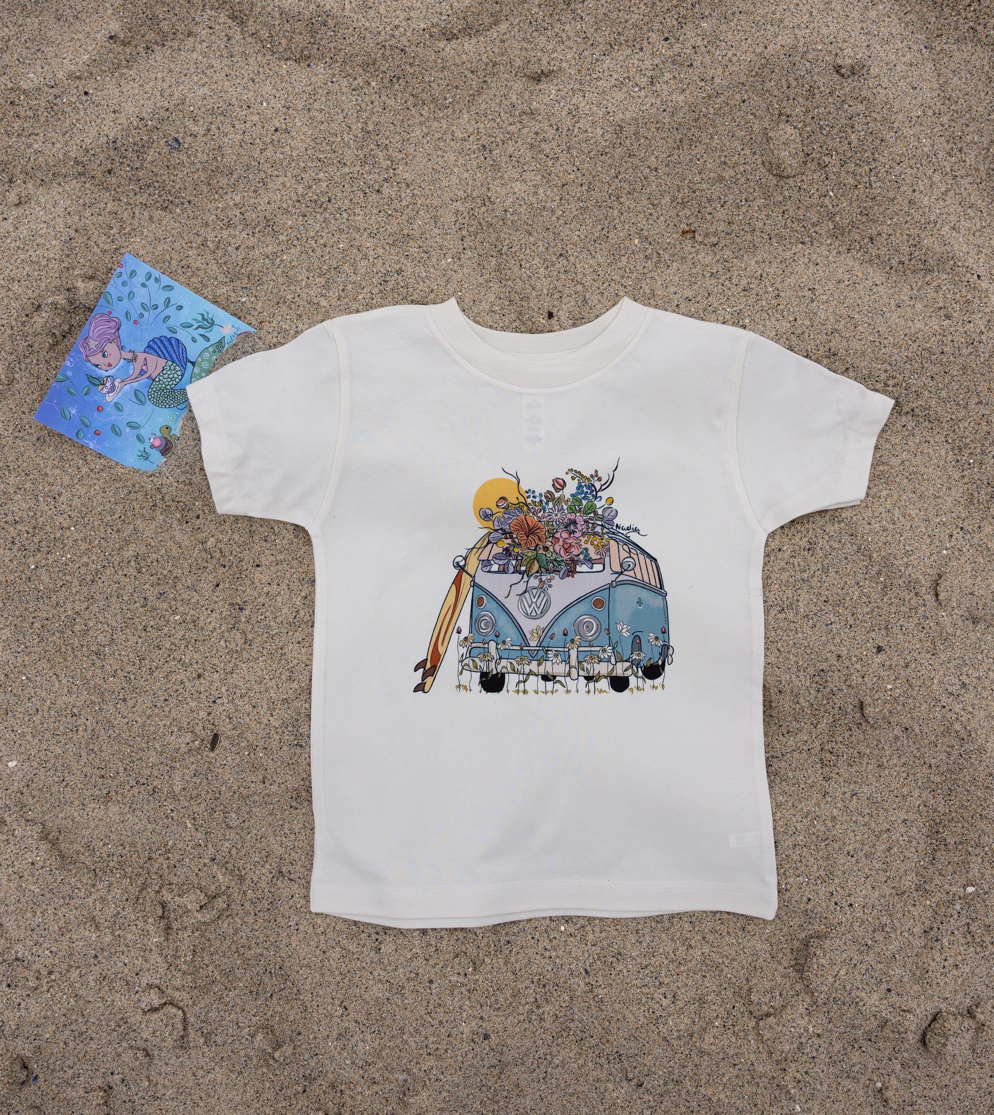 North Shore Kids Surf Bus illustrated graphic individually printed on premium quality cotton.